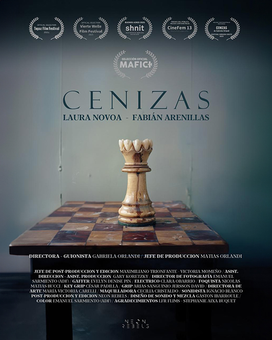 Cenizas” (2023), es un cortometraje que explora la complejidad de las relaciones humanas y la violencia de género. A través de una narrativa íntima y visualmente poderosa, la historia se centra en una pareja que, mediante una partida de ajedrez, revela las tensiones y conflictos subyacentes en su relación. La metáfora del juego sirve como hilo conductor para desentrañar emociones reprimidas y dinámicas de poder, llevando al espectador a una reflexión profunda sobre el control, la resistencia y la liberación.